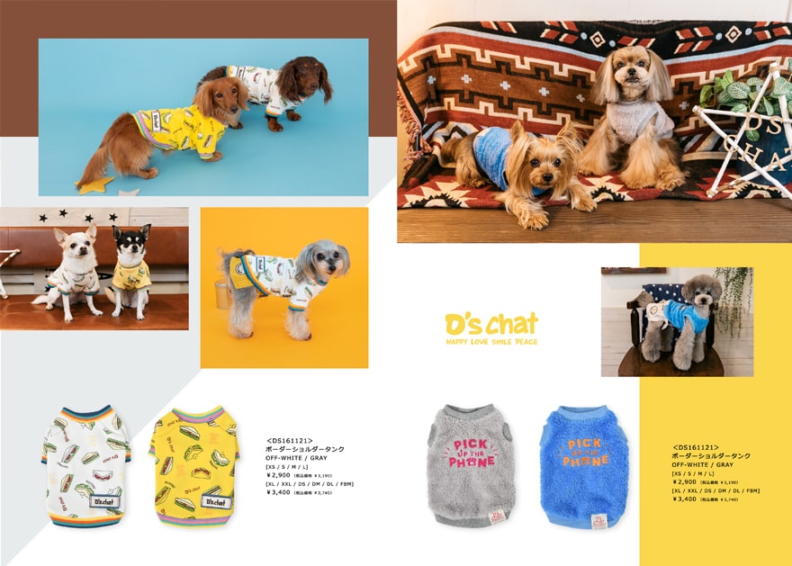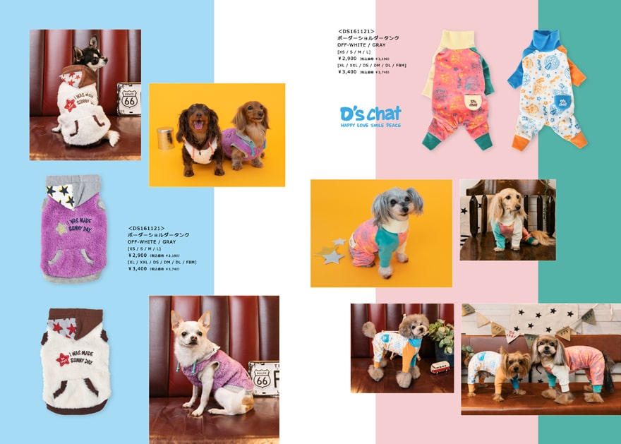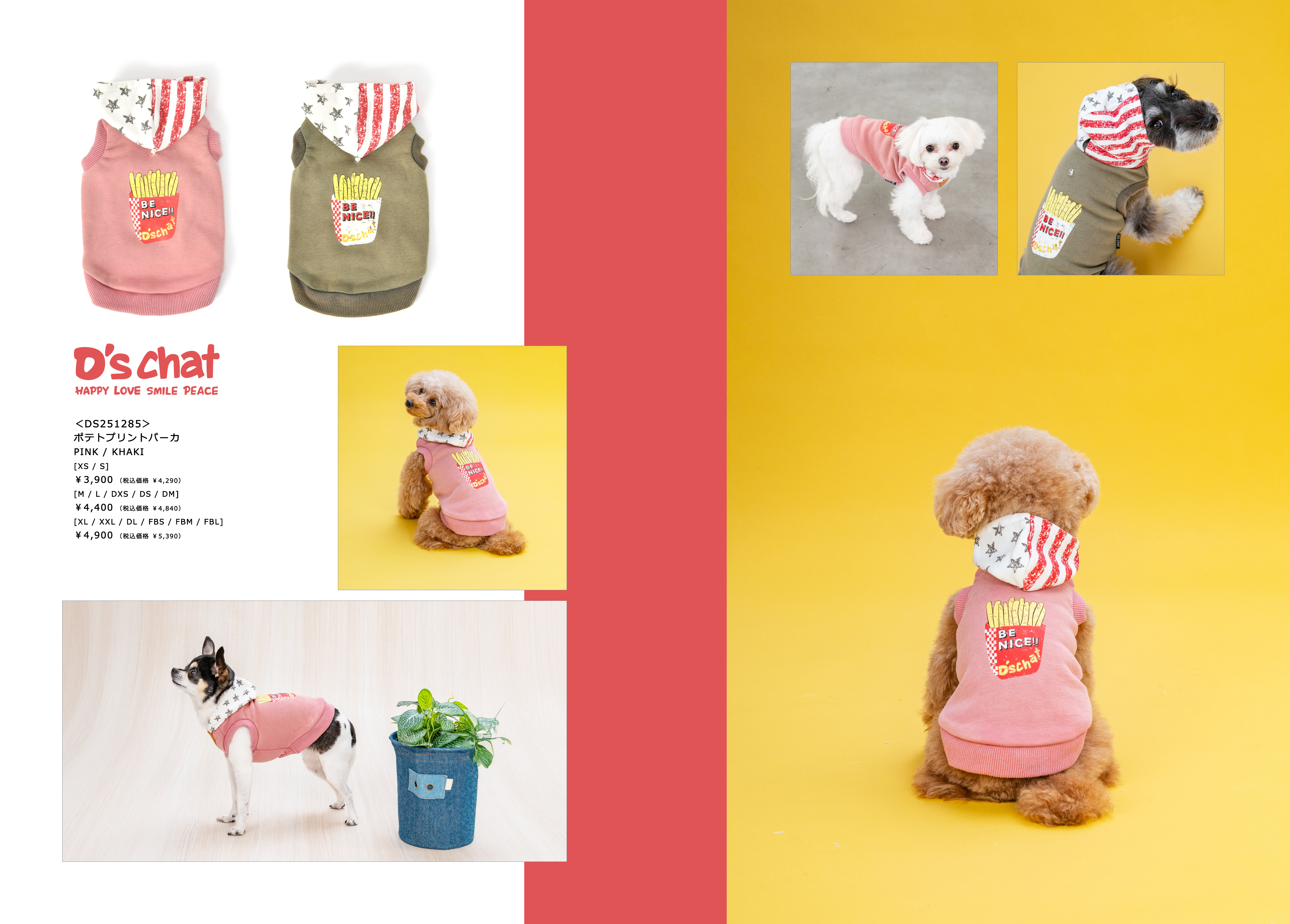 2025年春夏コレクションカタログは今季の新作、おもちゃなどを掲載。「うちのワンコがこのお洋服を着たら…」と想像がふくらむ、是非お手にとっていただきたい一冊です。