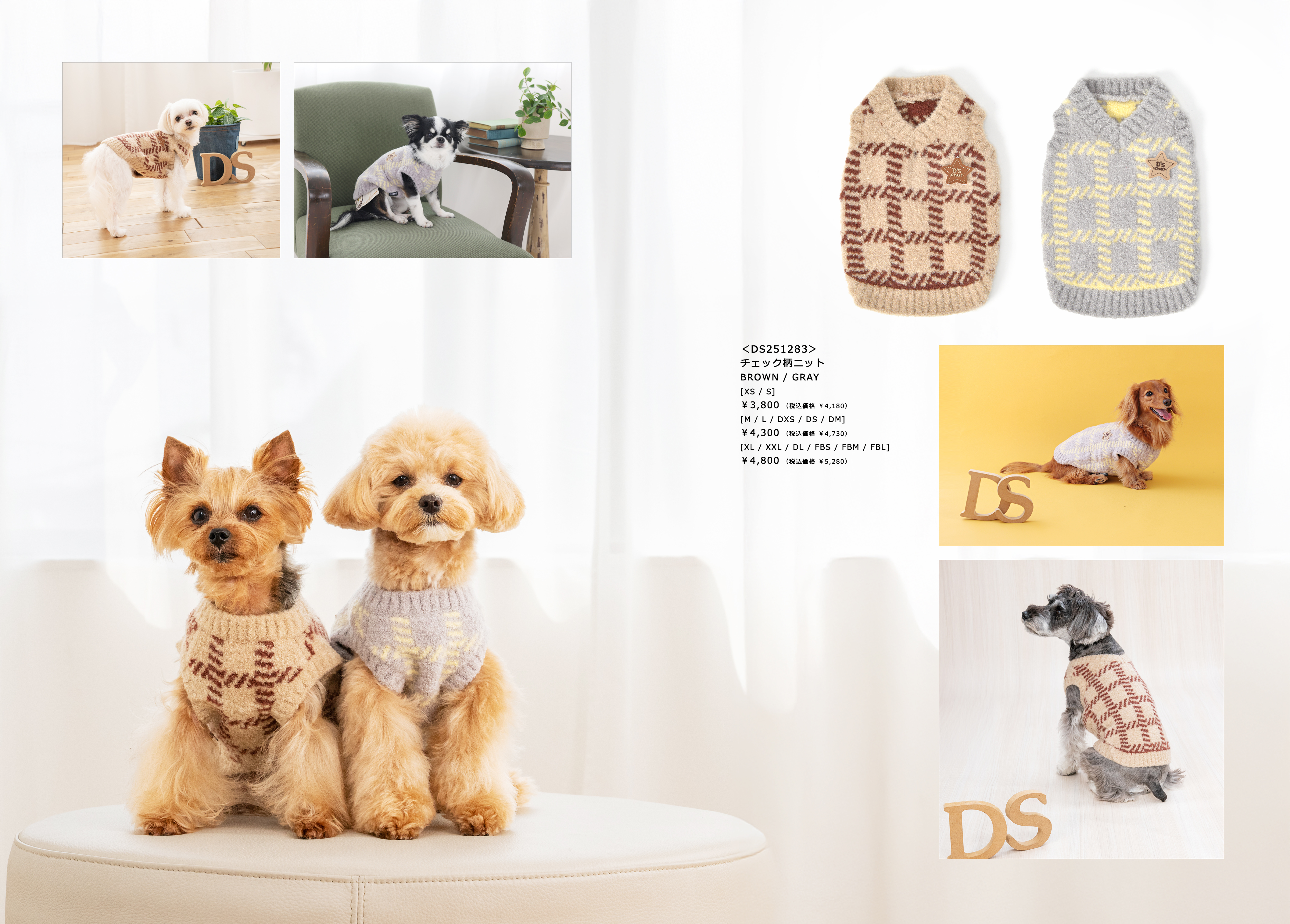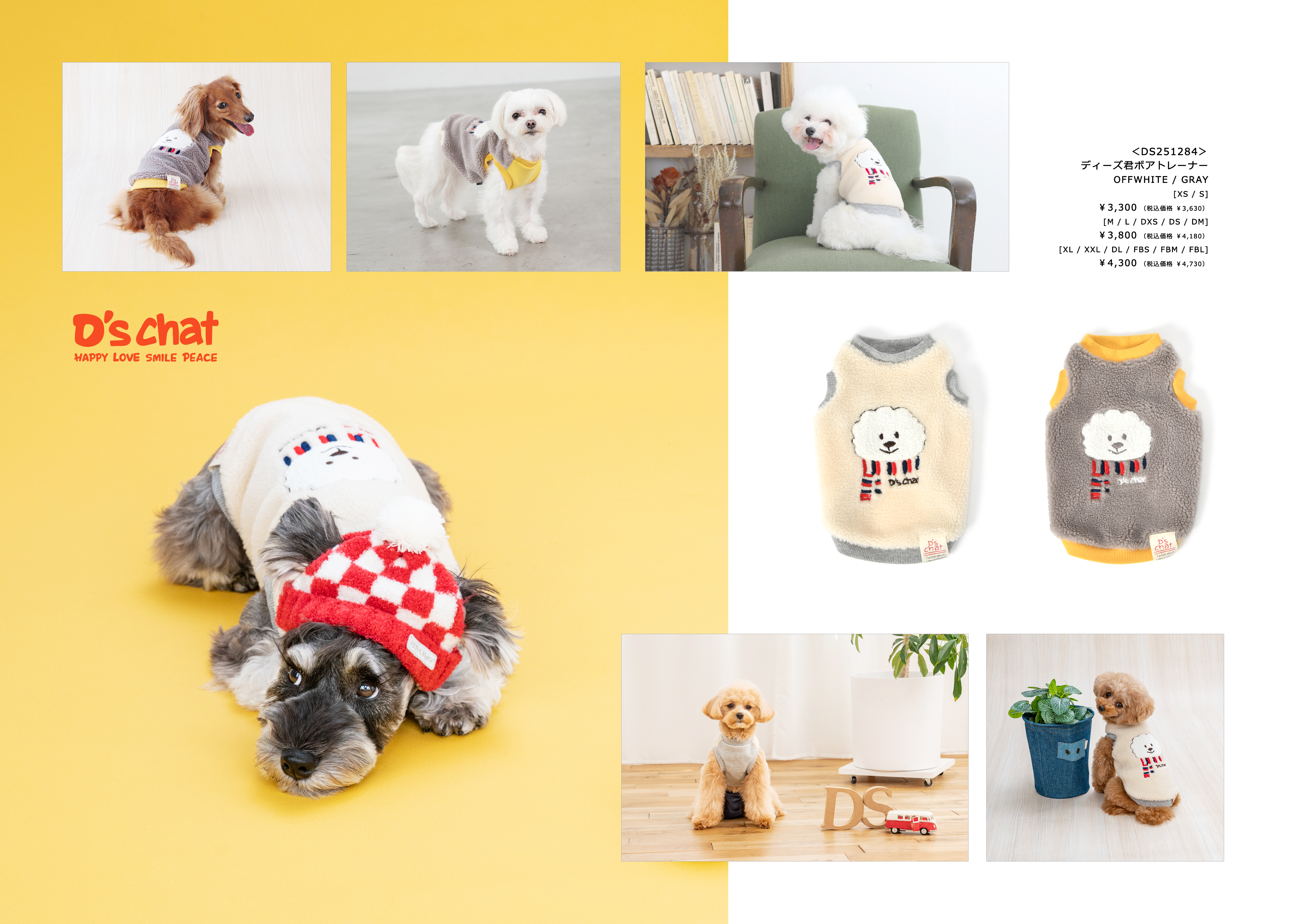 2025年秋冬コレクションカタログは今季の新作、おもちゃなどを掲載。「うちのワンコがこのお洋服を着たら…」と想像がふくらむ、是非お手にとっていただきたい一冊です。